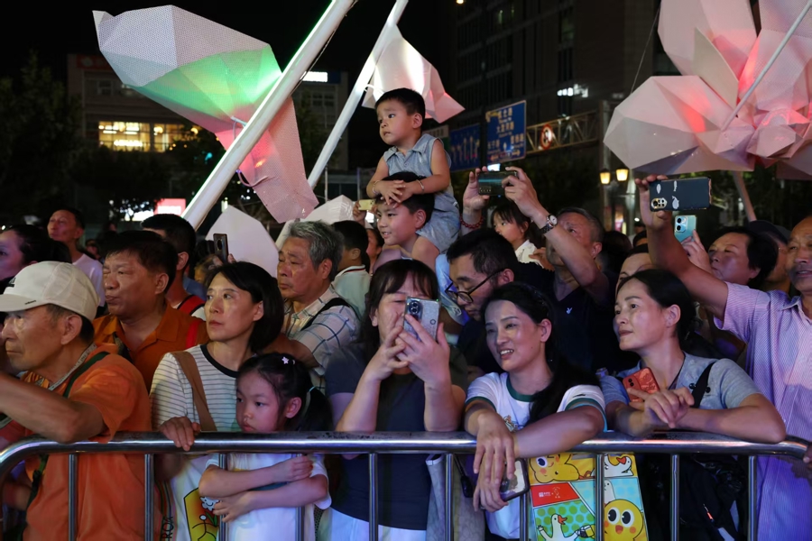 19时,伴随着鸣笛指令发出,25辆花车依次从凯旋北路缓缓驶出,沿中山北路、曹杨路、宁夏路巡游展示,灯光璀璨映照着流光溢彩,载歌载舞交织着欢声笑语,现场的市民游客,拿起手上的相机、手机,聚焦花车,定格美好难忘的瞬间。